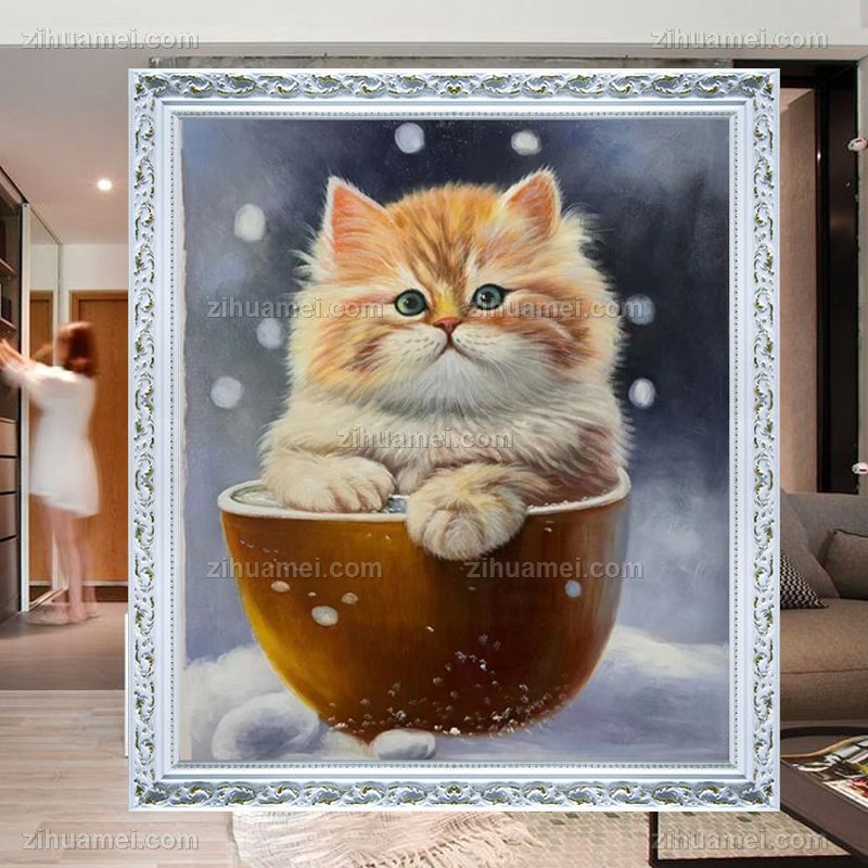 手绘宠物油画儿童卧室油画猫咪动物油画 手绘