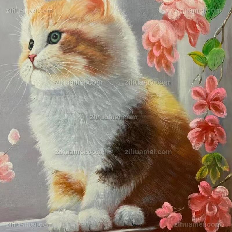 手绘宠物油画儿童卧室油画猫咪动物油画 手绘