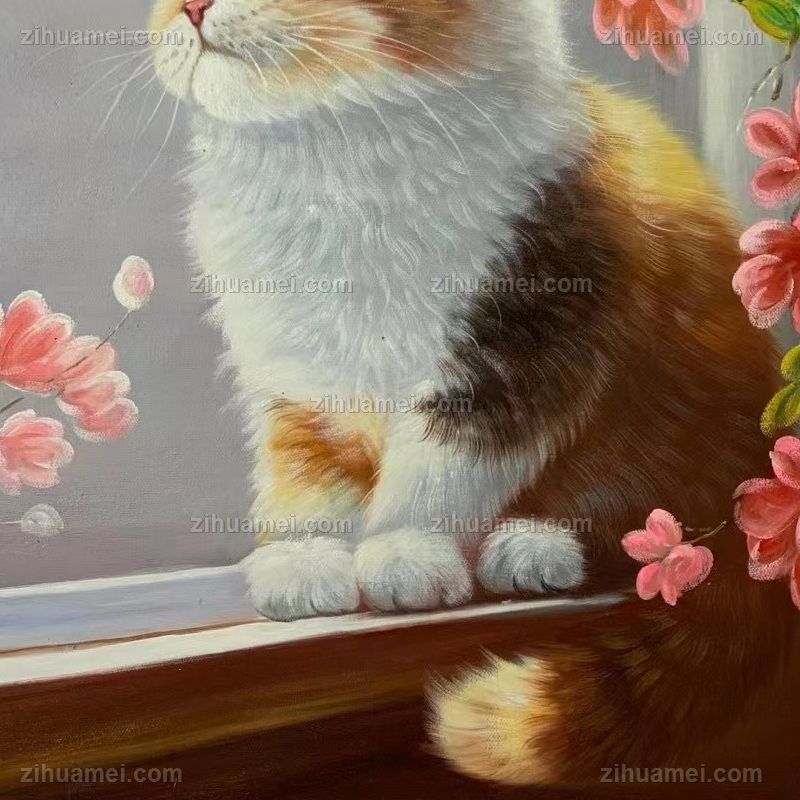 猫蝶手绘动物油画写实油画实木外框 手绘