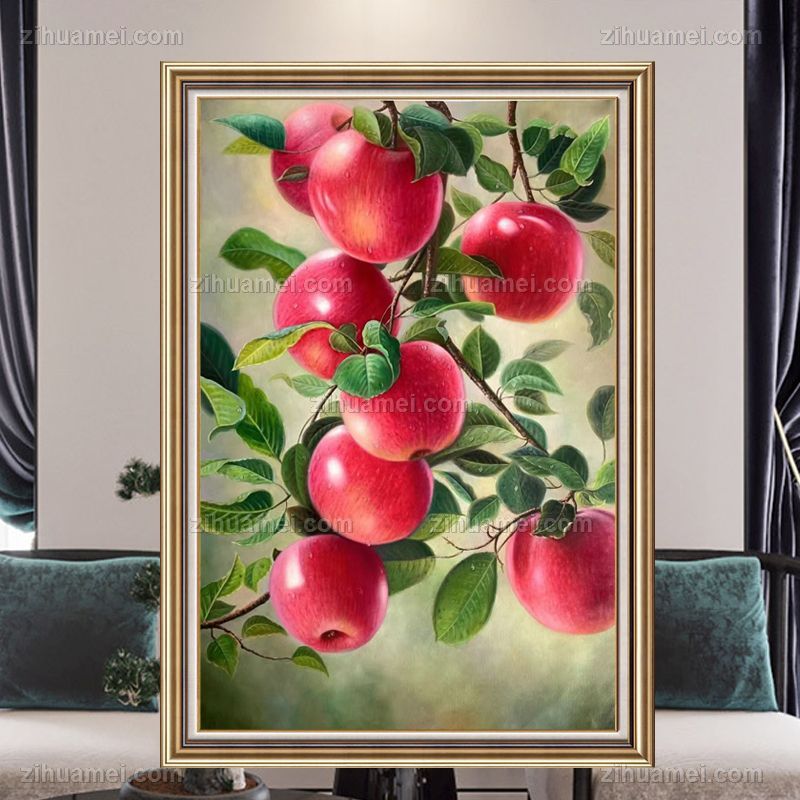 水果静物写实油画纯手绘油画苹果图实木画框 手绘