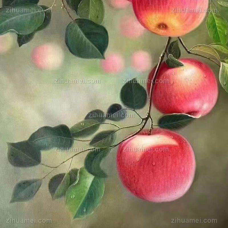• 红红火火平平安安水果静物写实油画纯手绘苹果图