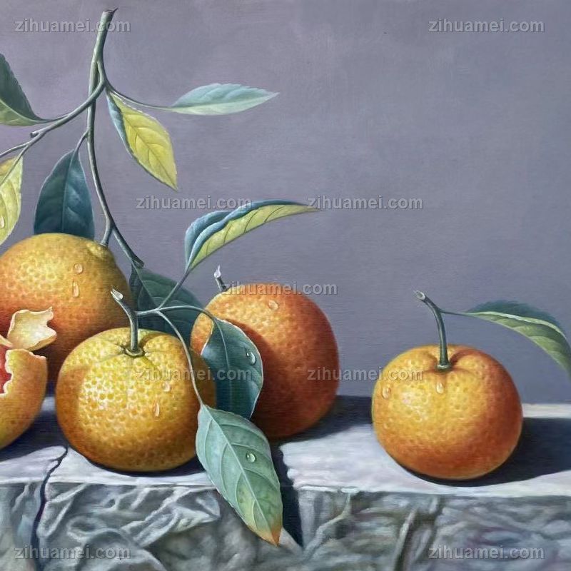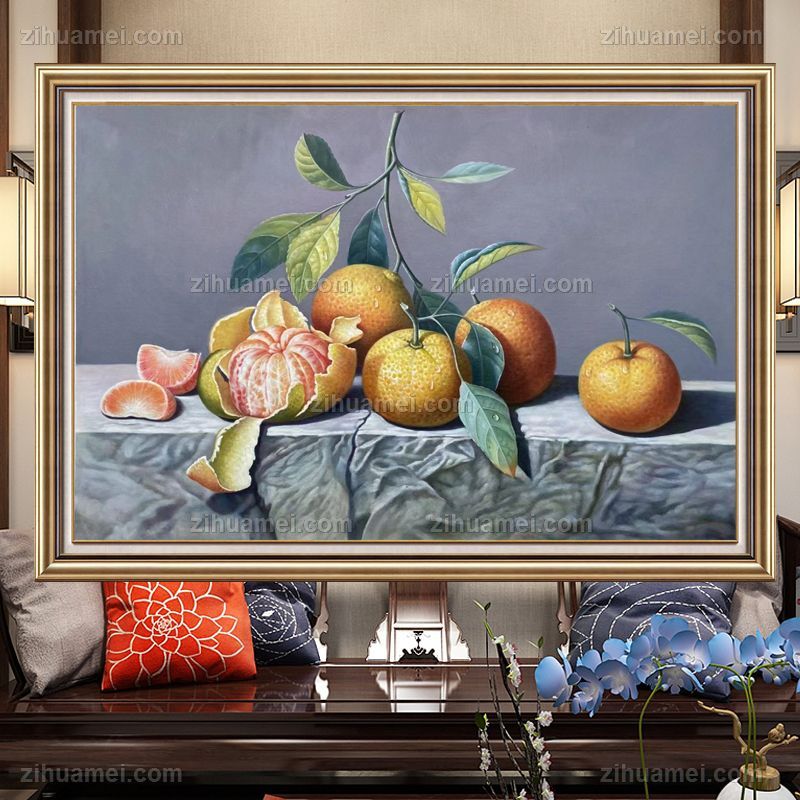 • 新中式安居乐业水果静物写实油画桔子图纯手绘油画