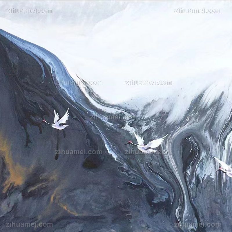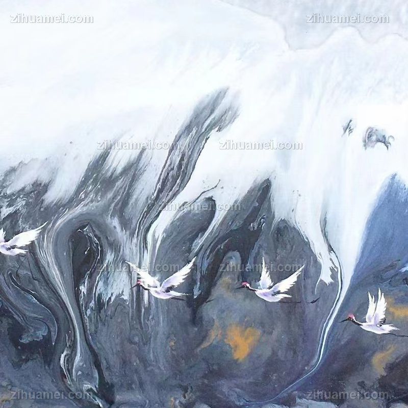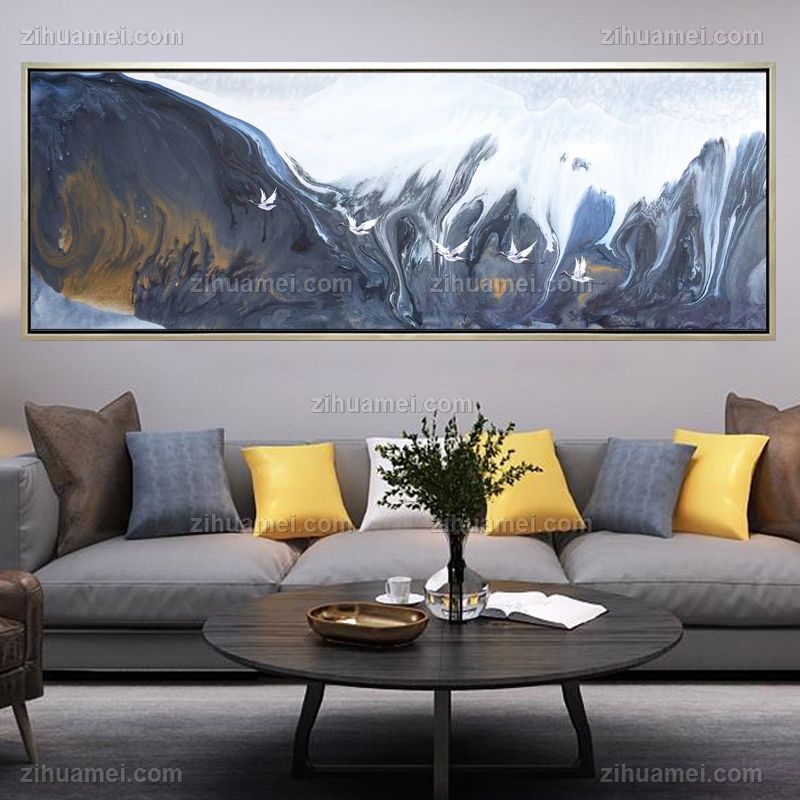 • 禅意现代茶室纯手绘油画一行白鹭飞天油画原创油画