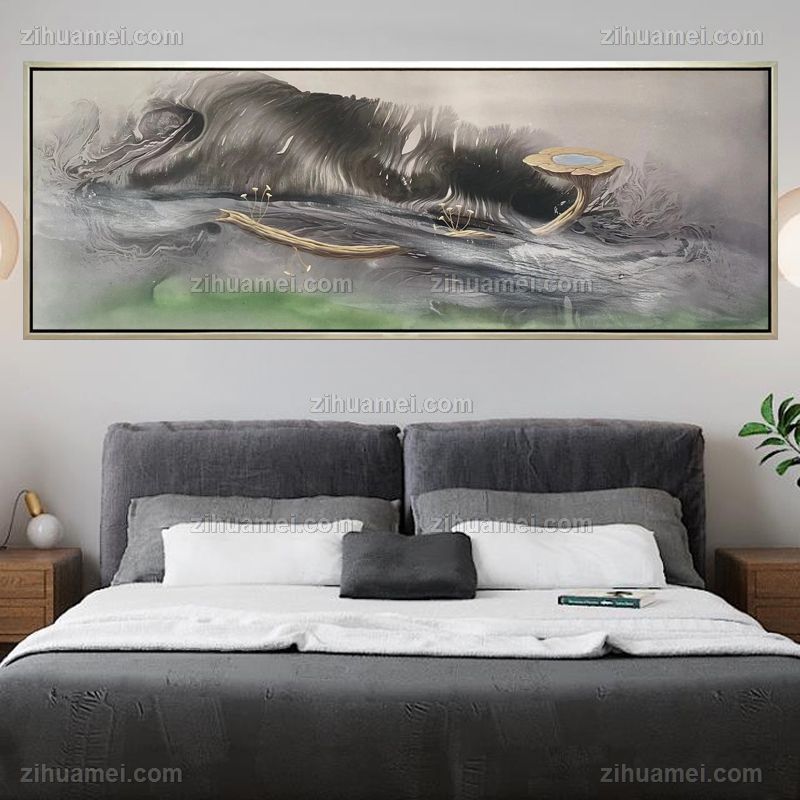 • 经典灰禅意油画纯手绘客厅卧室挂画事事如意油画
