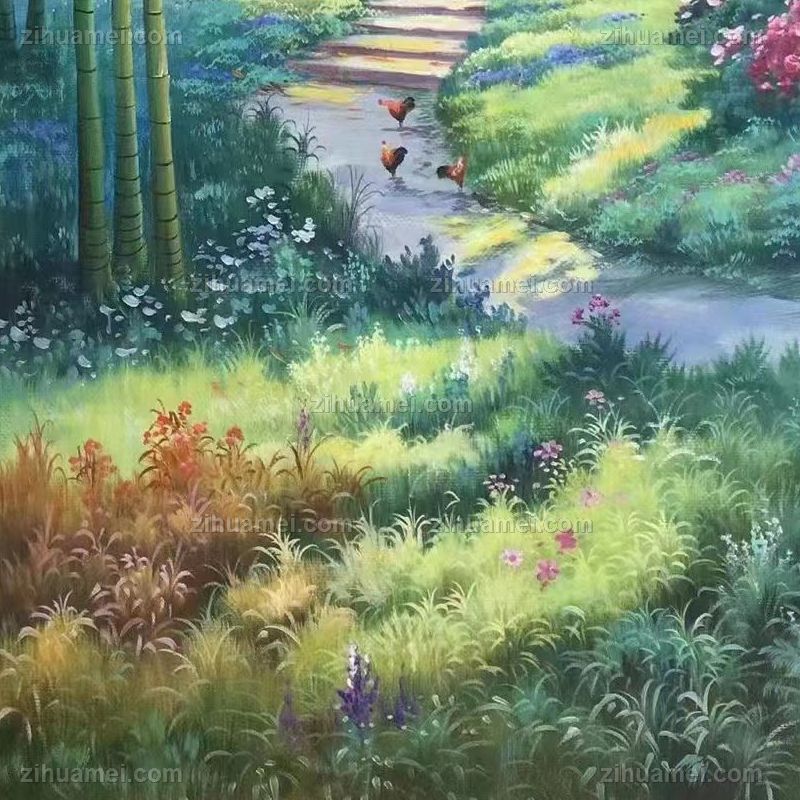 • 纯手绘竹子林人间风景油画