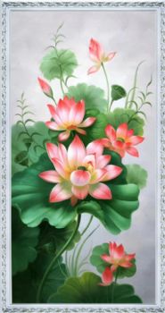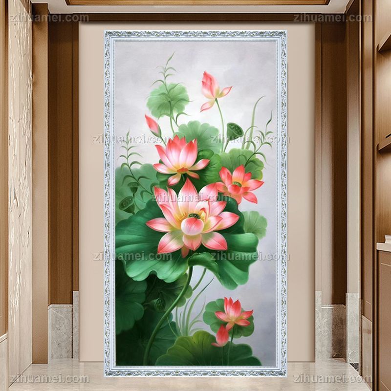 • 荷花风景油画纯手绘油画寓意和和美美和气生财实木画框