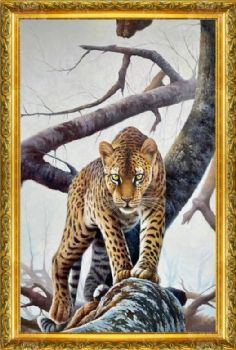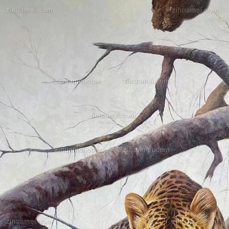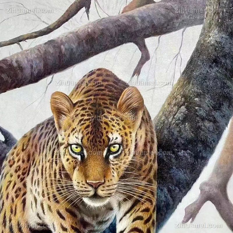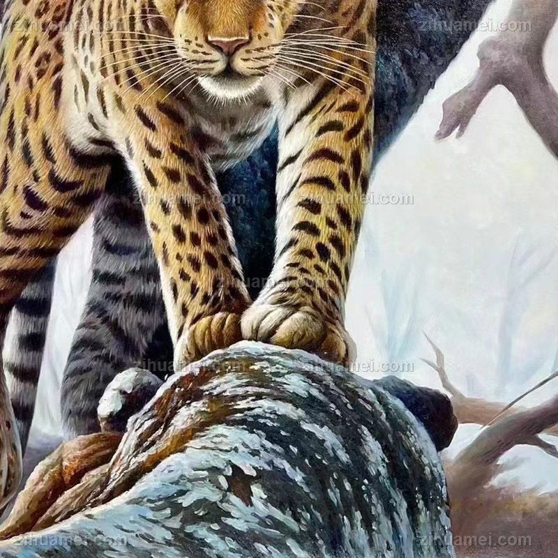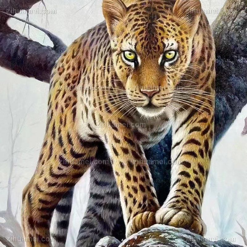 • 动物写实精品纯手绘油画金钱豹豹子图实木画框
