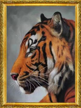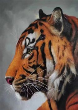 • 老虎虎头王者风范镇宅避邪动物写实油画纯手绘油画实木画框