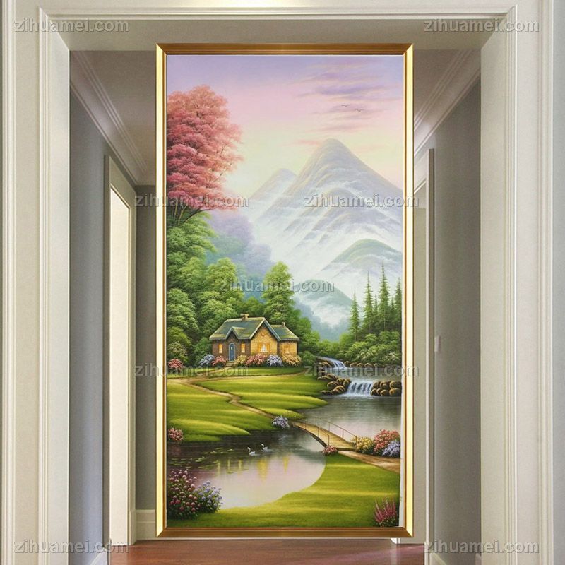 • 欧式托马斯风景油画玄关油画纯手绘风景油画实木画框
