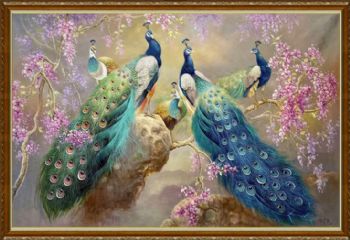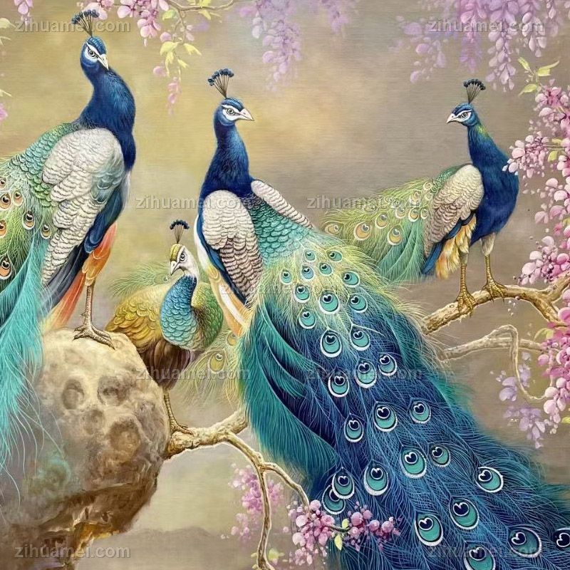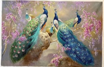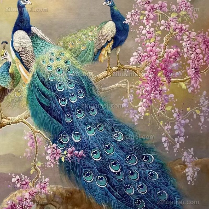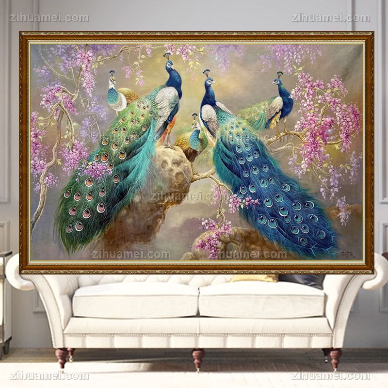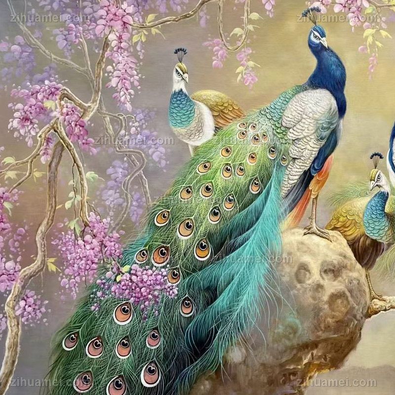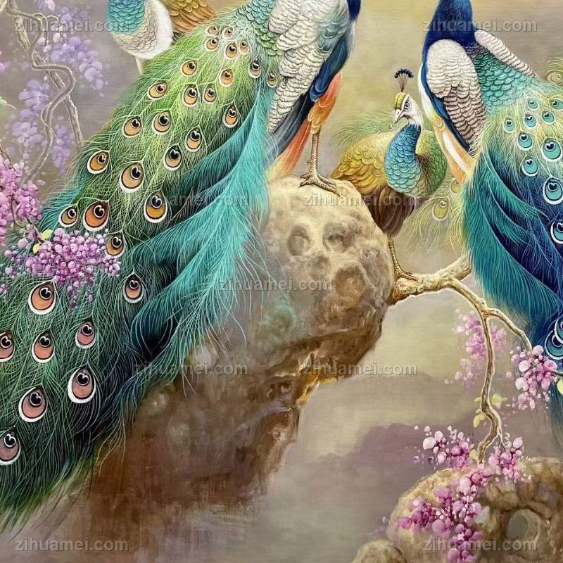 • 精品孔雀纯手绘新中式油画富贵吉祥孔雀客厅油画