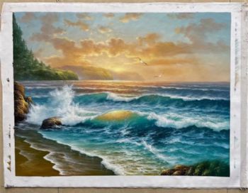 • 精品海浪风景油画乘风破浪纯手绘风景油画