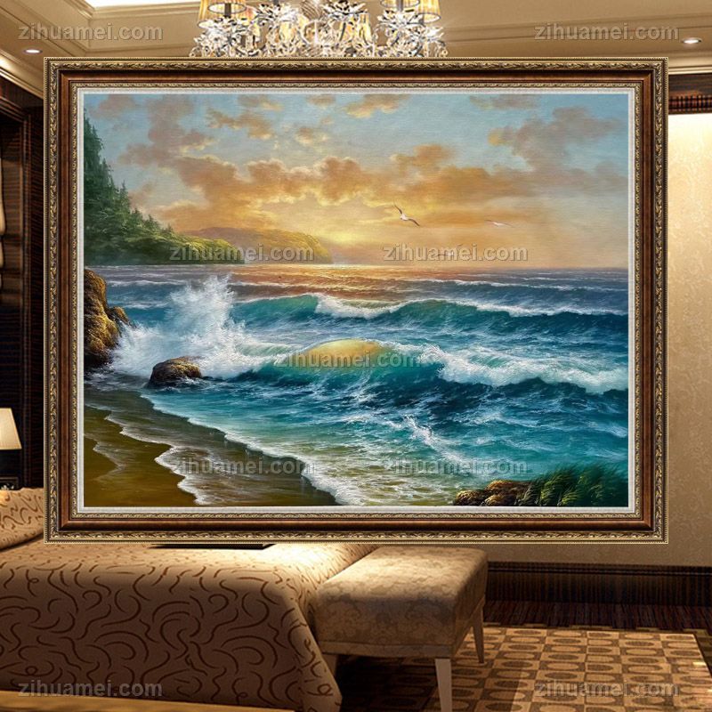 海浪风景油画纯手绘油画玄关风景油画 手绘