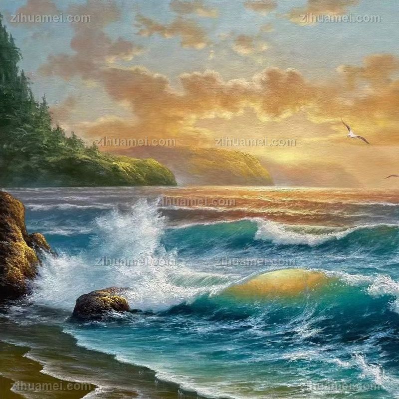 纯手绘海浪风景油画适合办公室茶室的风景油画 手绘