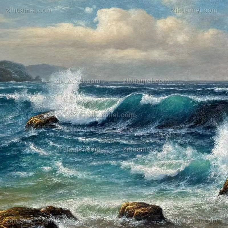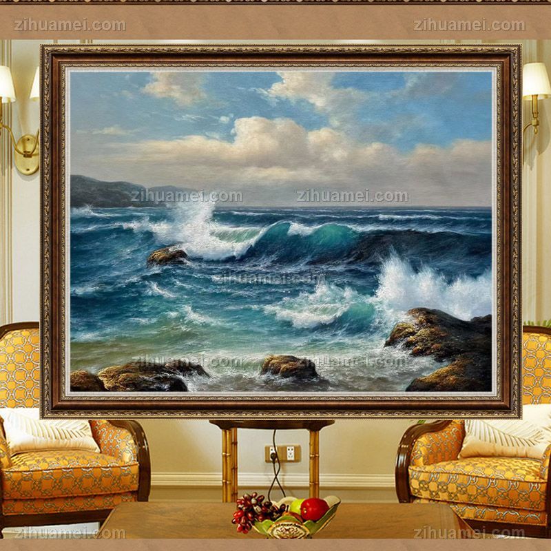 • 纯手绘海浪风景油画适合办公室茶室的风景油画