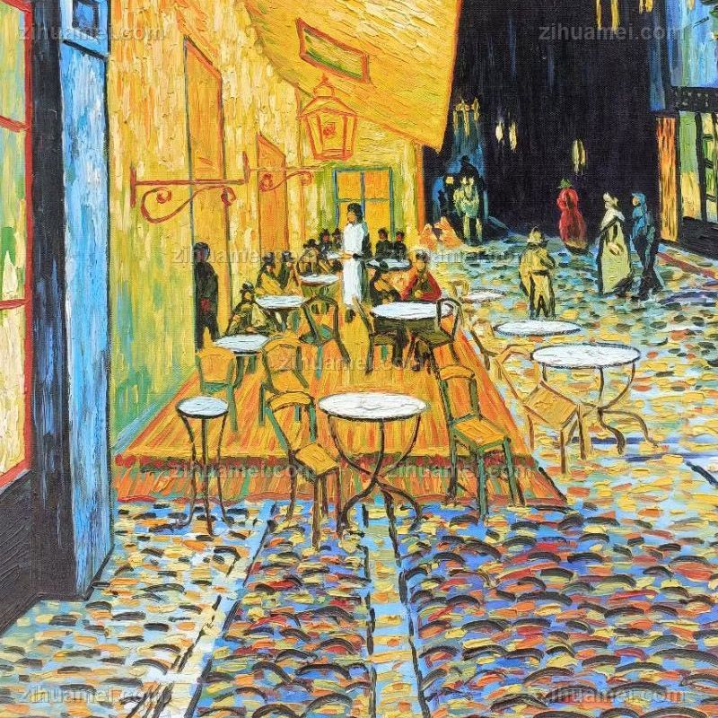 • 精品梵高系列咖啡馆厚肌理世界名画写意情景油画