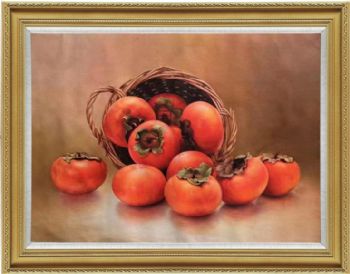 • 一框好事纯手绘写实静物油画柿子图事事如意实木画框