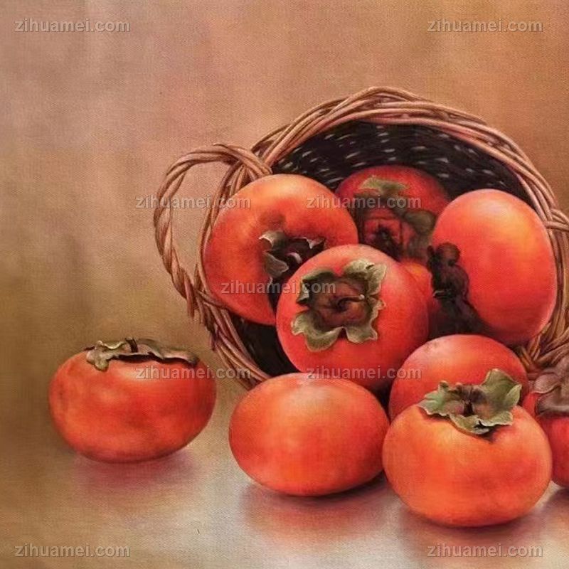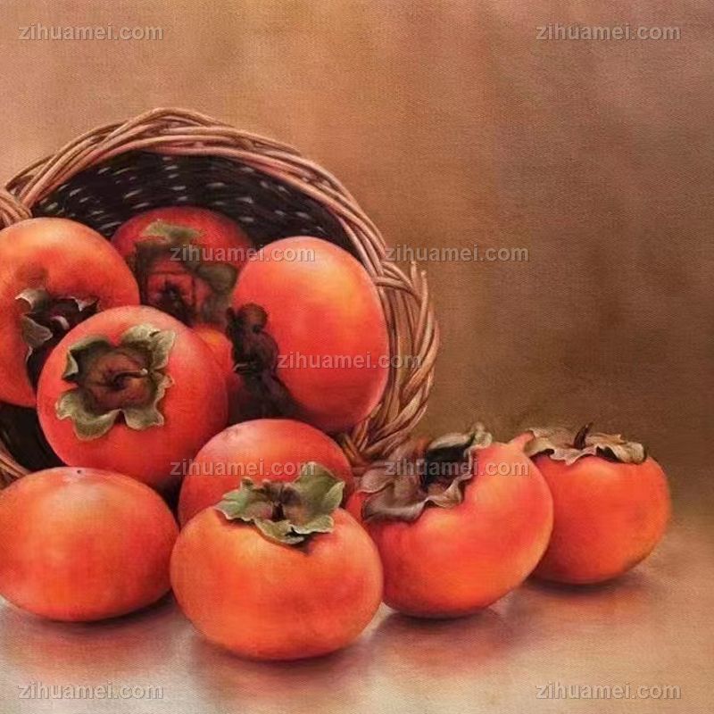 • 适合餐厅客厅的写实静物柿子图
