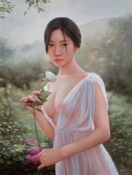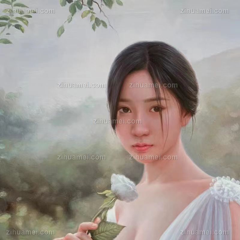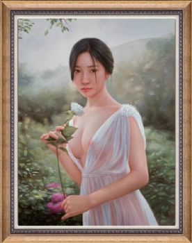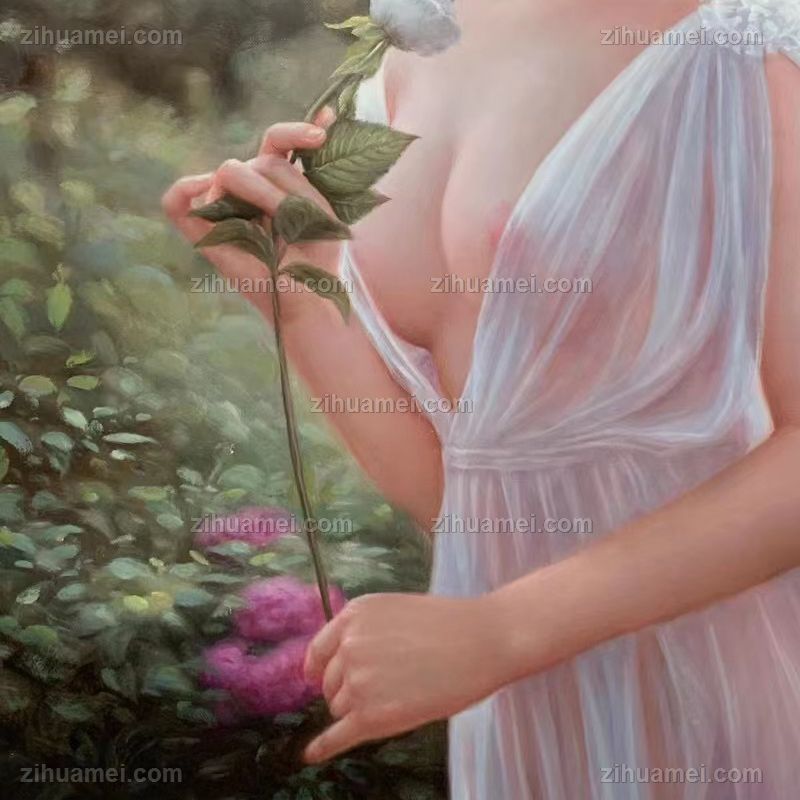 纯手绘人物写实油画美女图