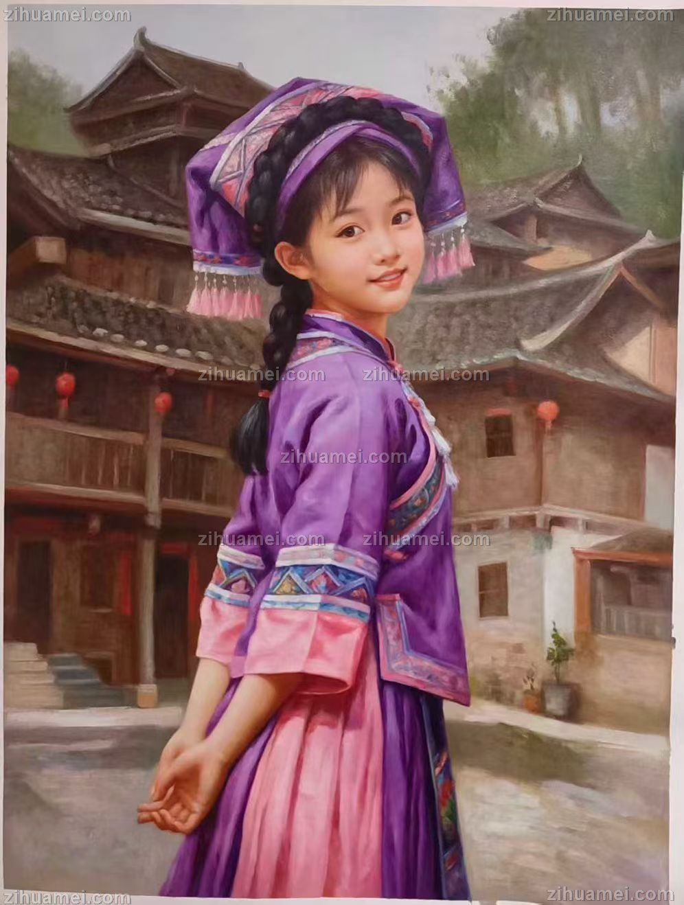 • 精品人物写实油画民族服装美女画纯手绘人物油画实木画框