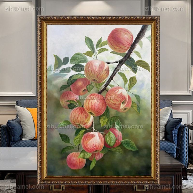 • 水果静物写实油画纯手绘油画苹果图实木画框