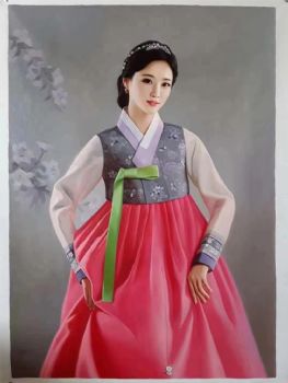 朝鲜精品人物写实油画纯手绘人物油画美女图 手绘