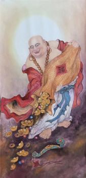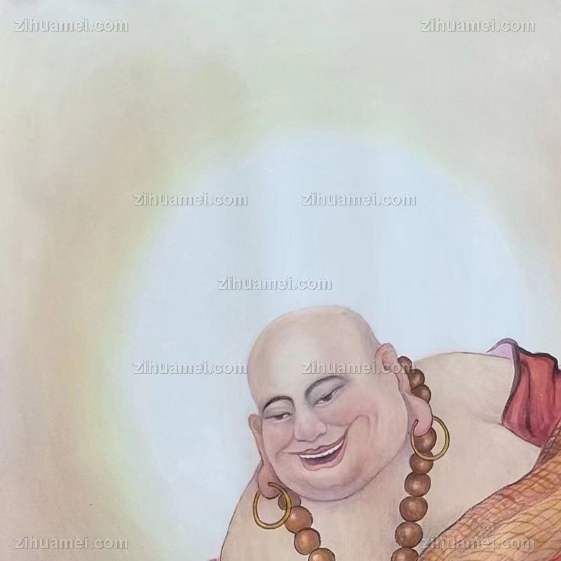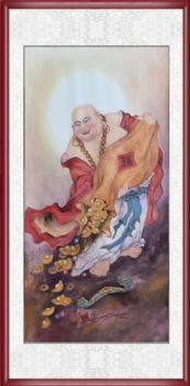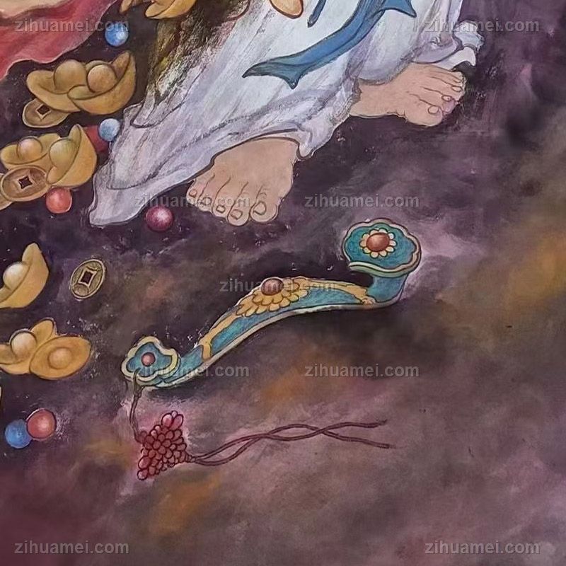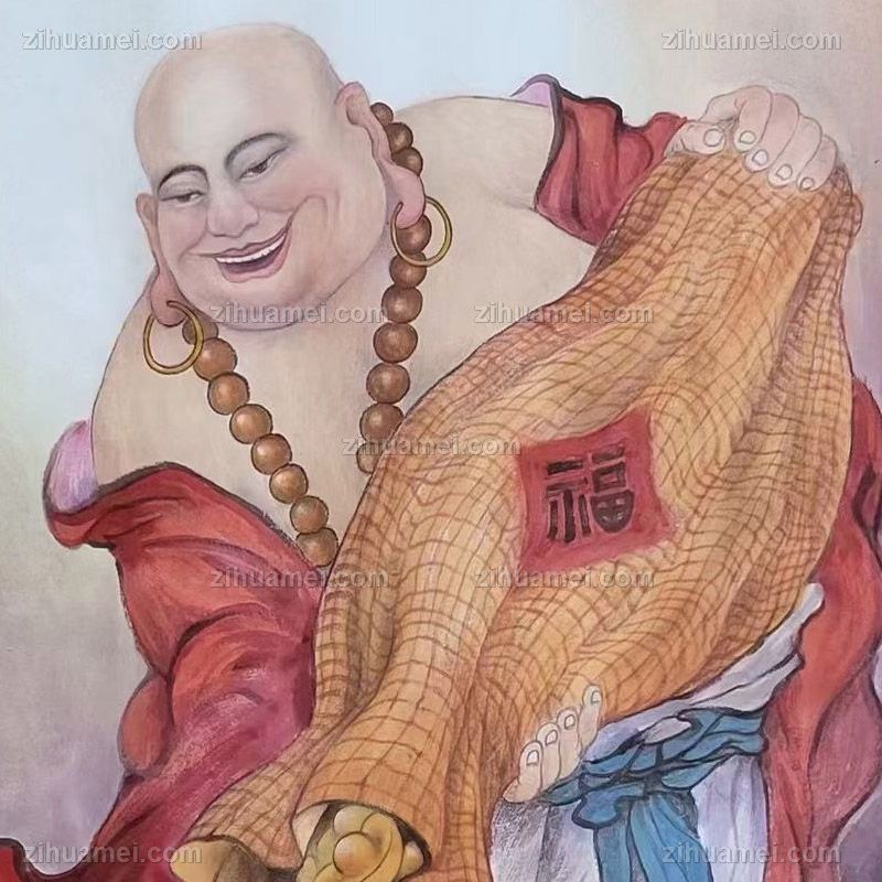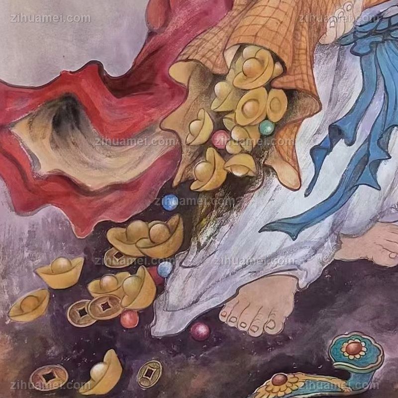 • 财源滚滚万事如意纯手绘人物国画工笔国画弥罗佛实木画框