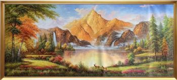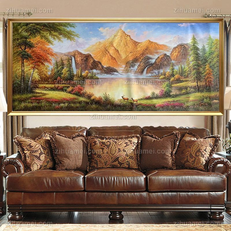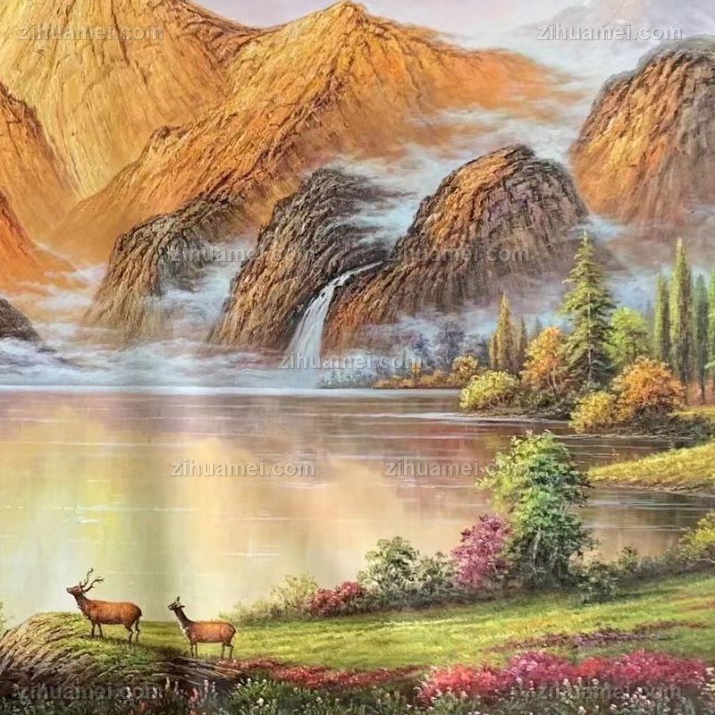 • 纯手绘金山油画鹿鹿通客厅山水风景油画聚宝盆油画