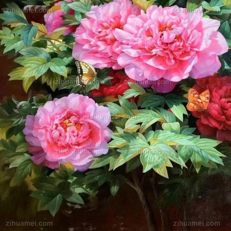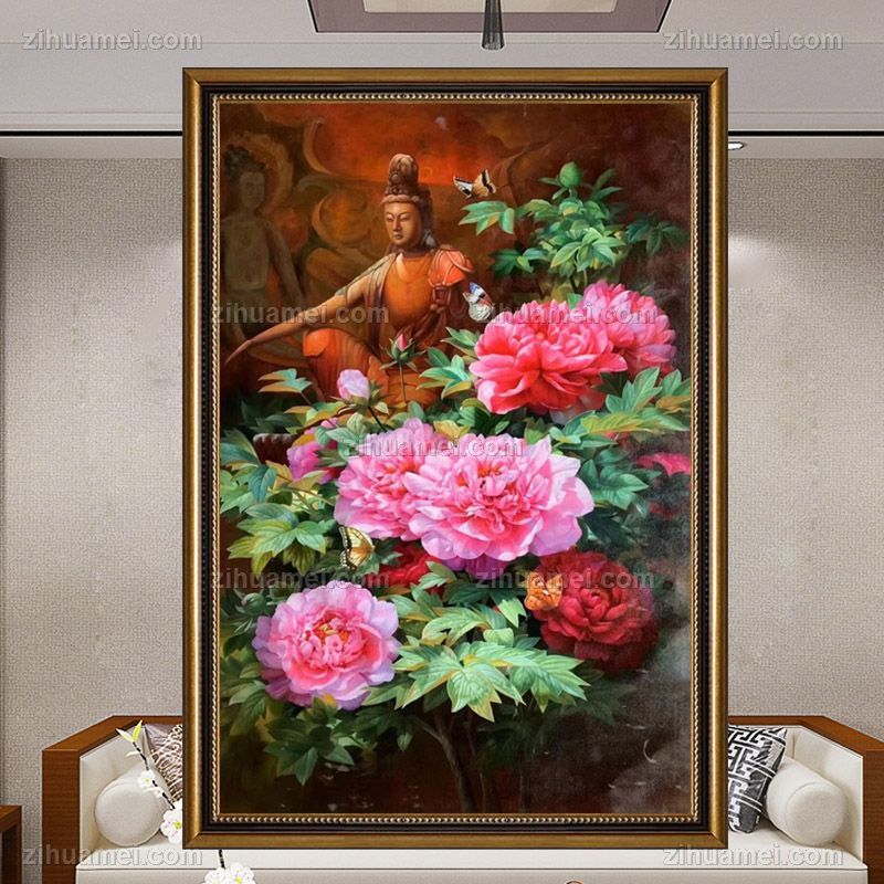 • 适合新中式玄关客厅的花卉油画牡丹图