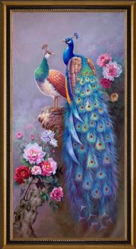 • 写实孔雀牡丹油画幸福吉祥花开油画纯手绘动物花卉油画