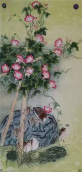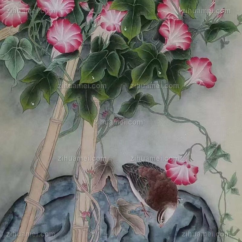 • 工笔国画纯手绘写实鹌鹑牵牛花花鸟国画