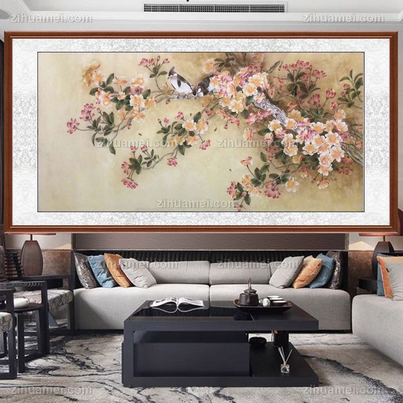 • 纯手绘水墨工笔国画花鸟国画客厅挂画实木柚木框