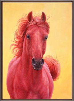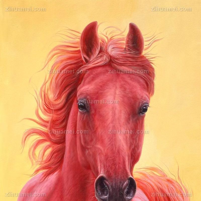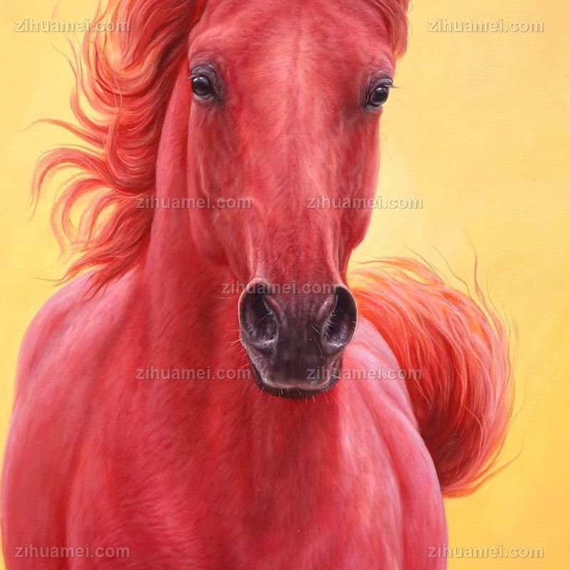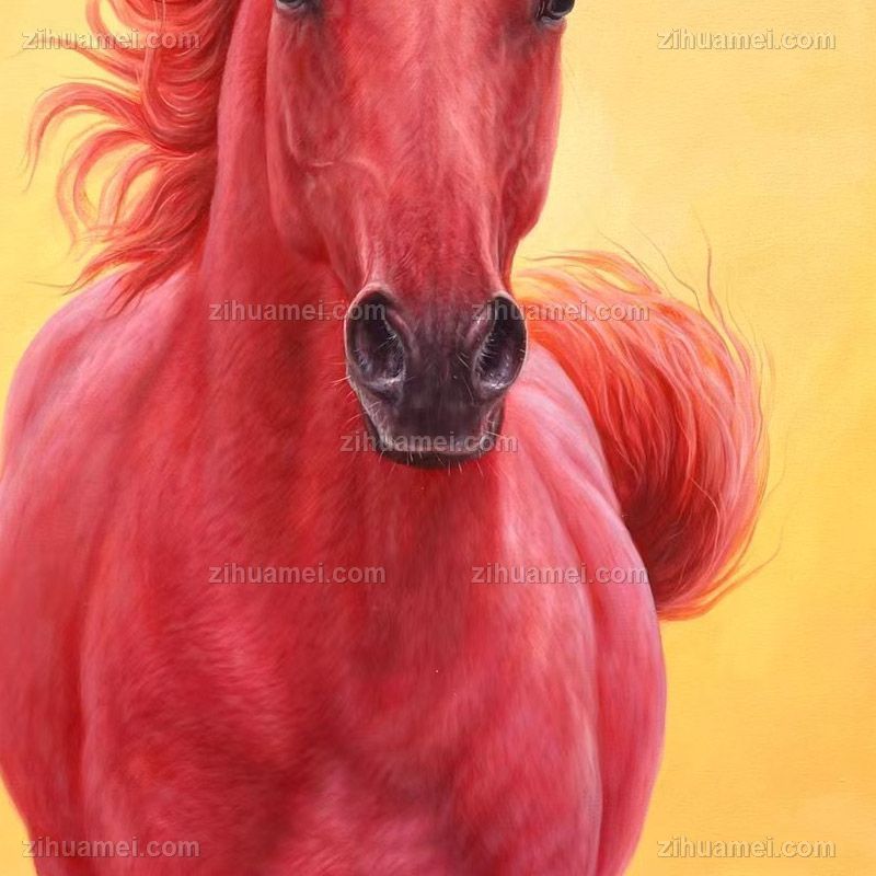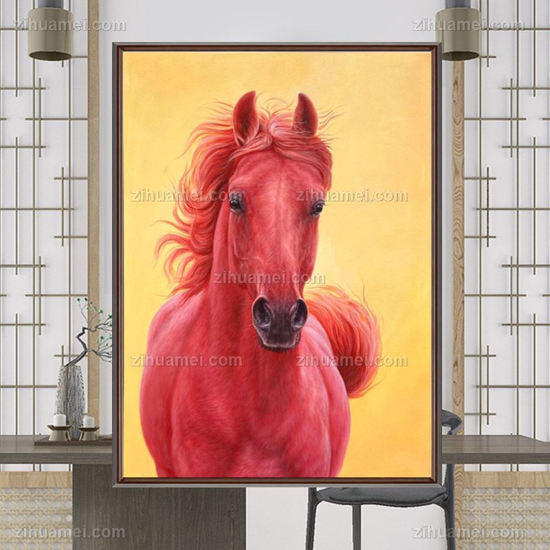 • 精品超写实动物油画汗血宝马红头马头纯手绘油画实木画框