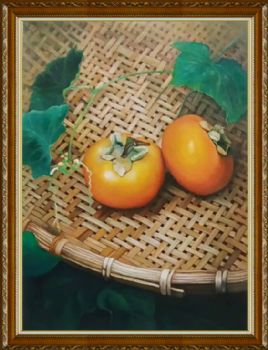 好事一箩框新中式静物写实油画事事如意柿子图 手绘