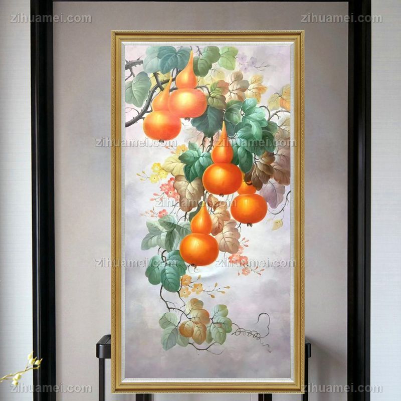 • 新中式花鸟油画葫芦图有福有禄福禄双全写实油画