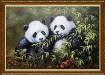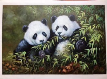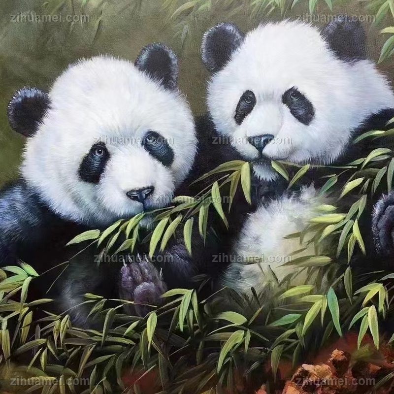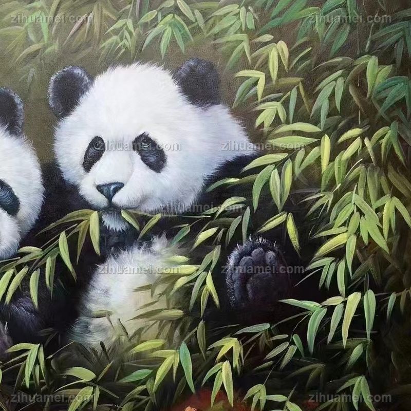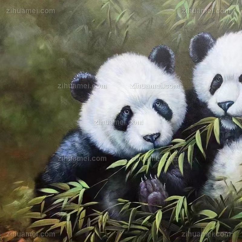 纯手绘熊猫油画