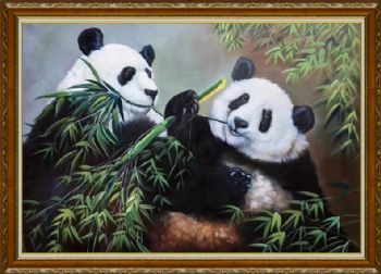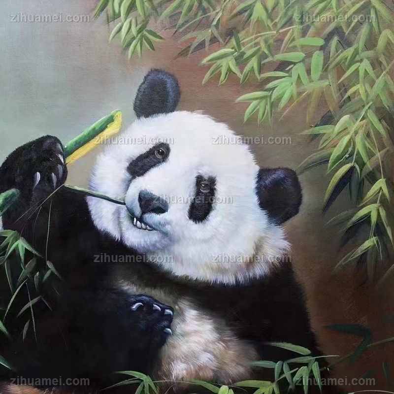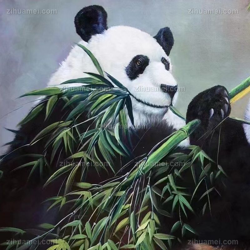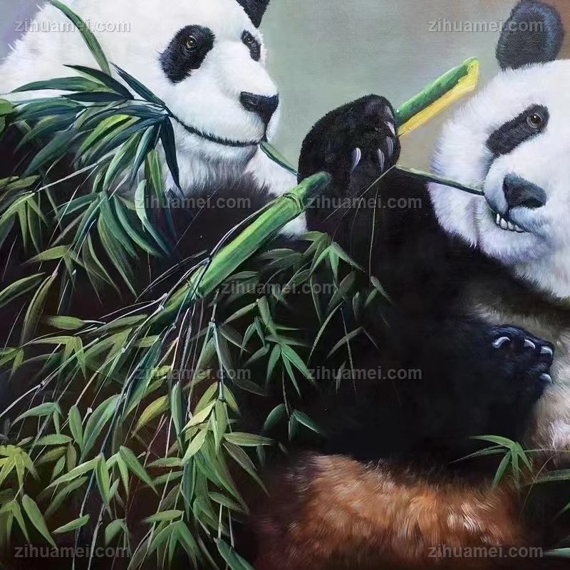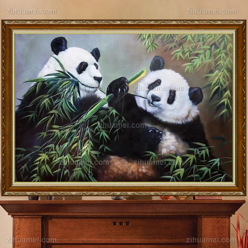 • 餐厅客厅动物油画纯手绘熊猫图写实油画