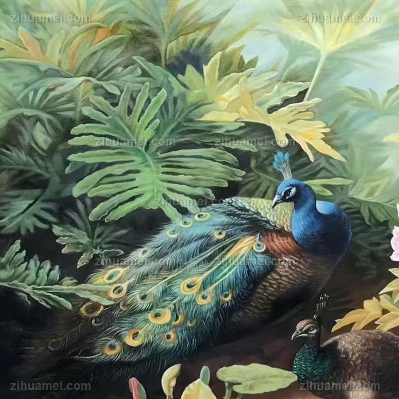 • 精品写实花鸟油画纯手绘花卉油画牡丹孔雀油画大厅挂画