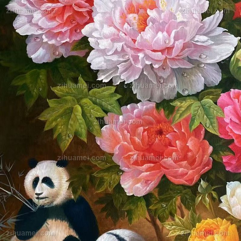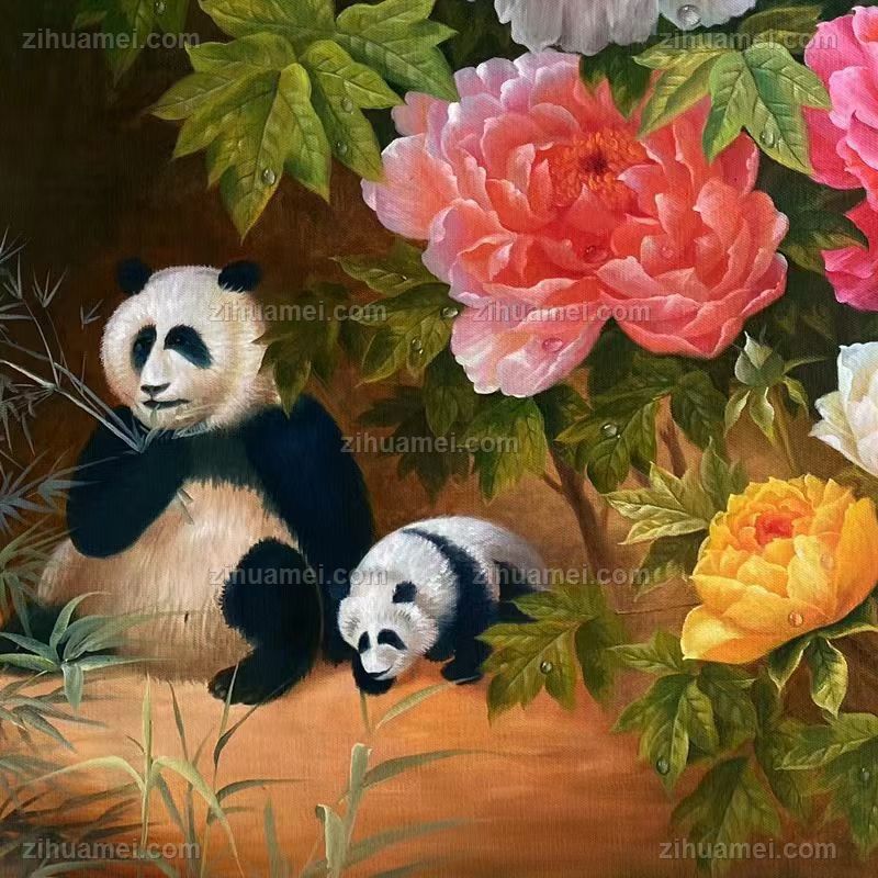 • 花鸟油画花鸟油画熊猫牡丹图