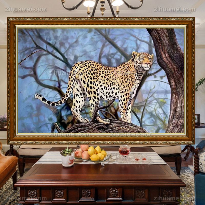 • 超写实动物油画纯手绘油画豹子图金钱豹客厅大厅油画