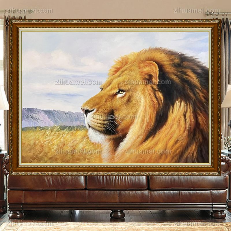 • 适合书房办公室动物油画狮子图