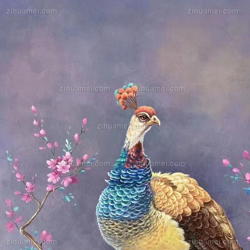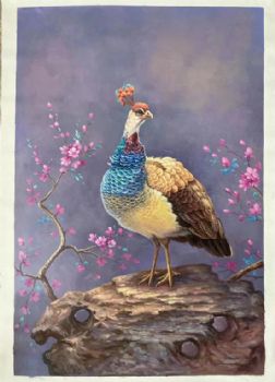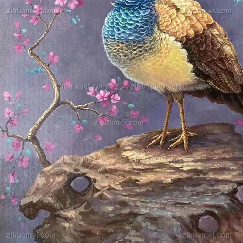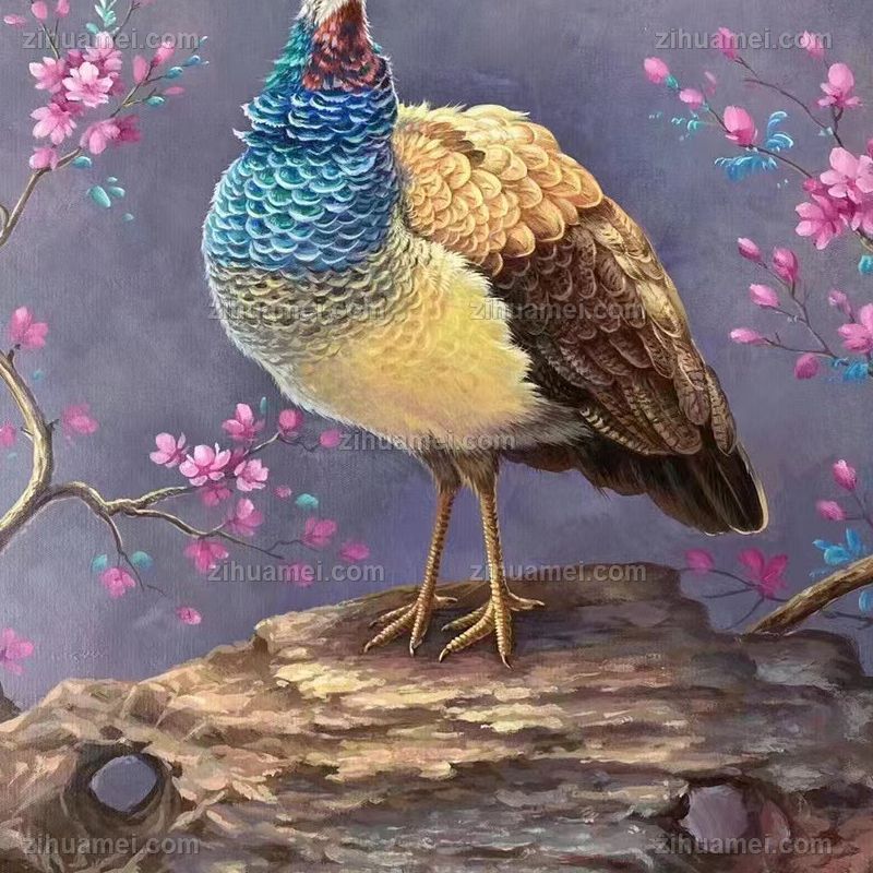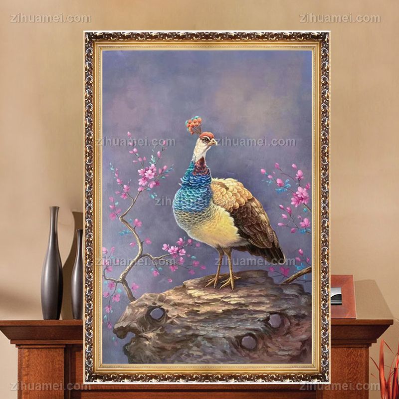 • 手绘动物花卉油画锦鸡孔雀油画石来运转锦上添花餐厅油画
