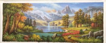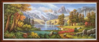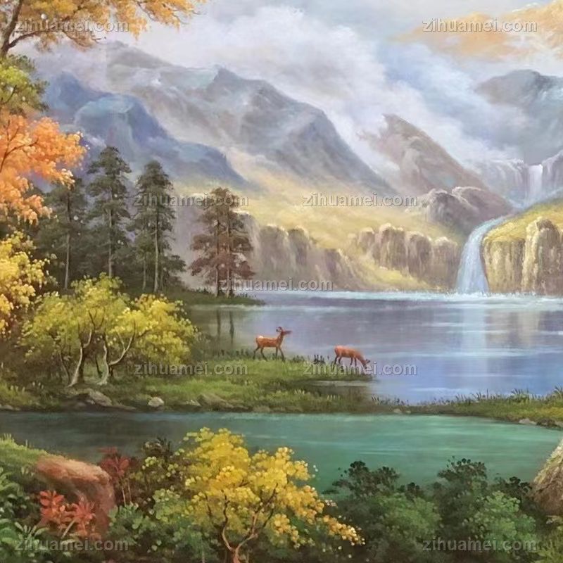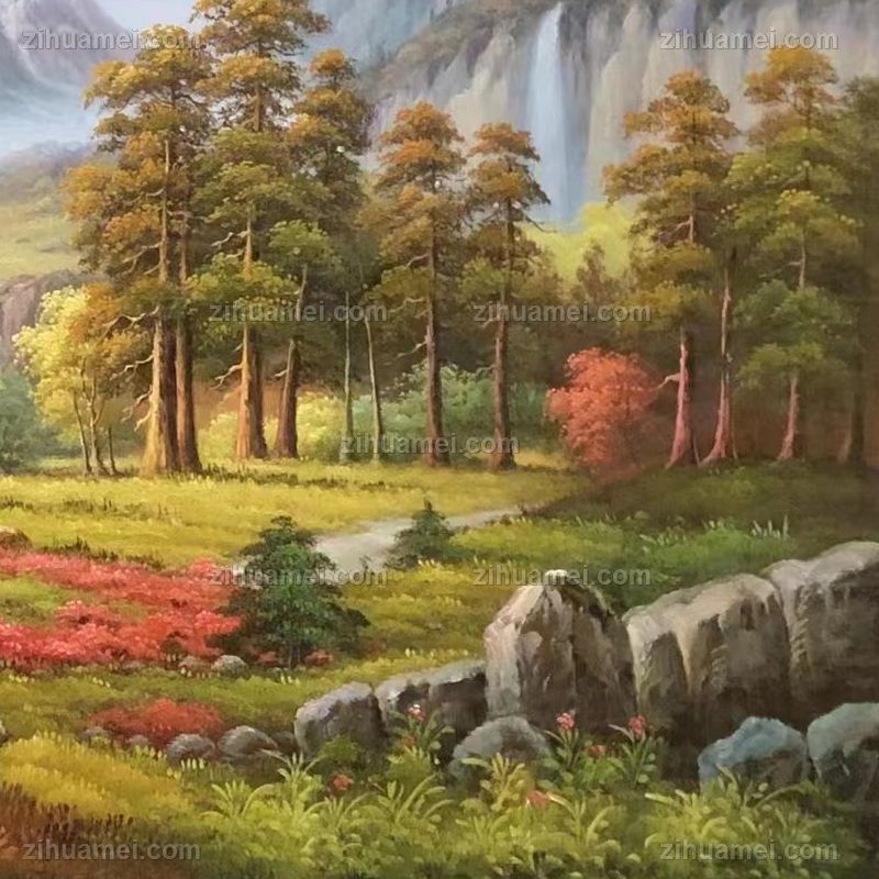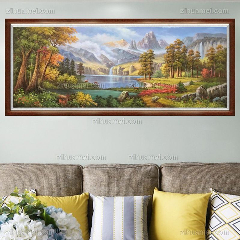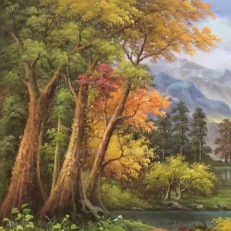 • 欧式风景油画纯手绘山水画客厅油画大山大树实木画框