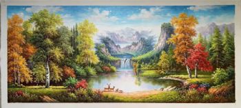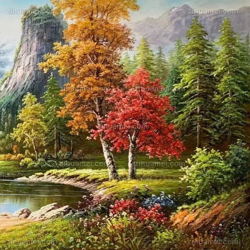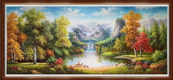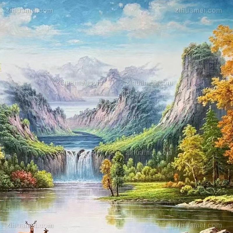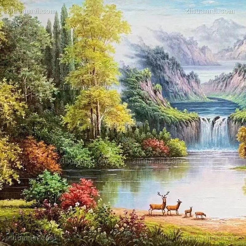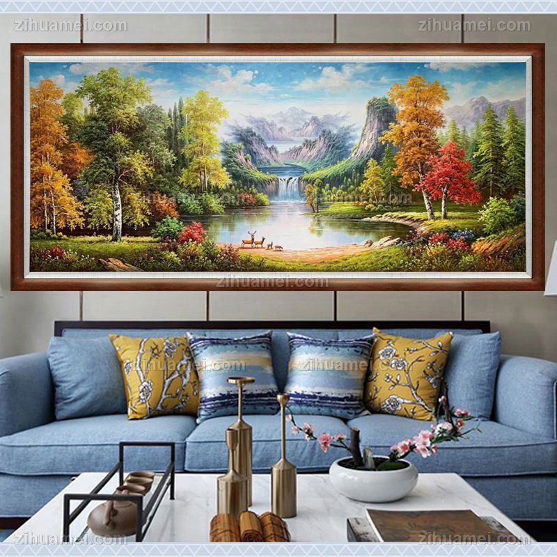 • 大幅风景油画纯手绘大厅欧式山水风景油画实木画框