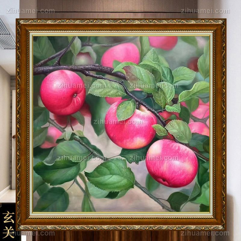 • 纯手绘写实油画平平安安新中式苹果静物油画实木画框