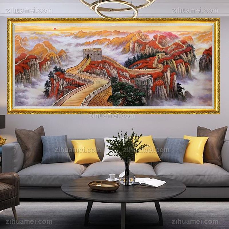 基业长青新中式手绘长城风景油画实木画框 手绘