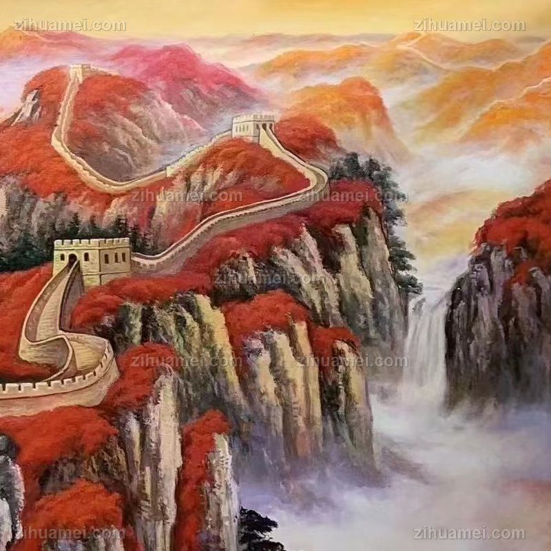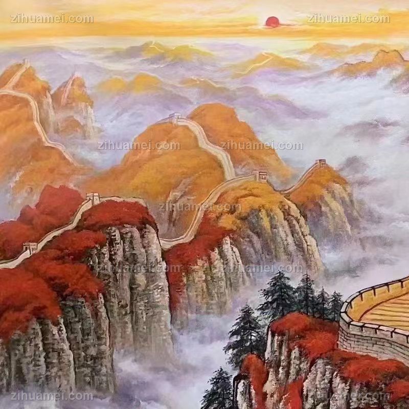 江山一条龙长鸿风景油画纯手绘长城风景油画 手绘