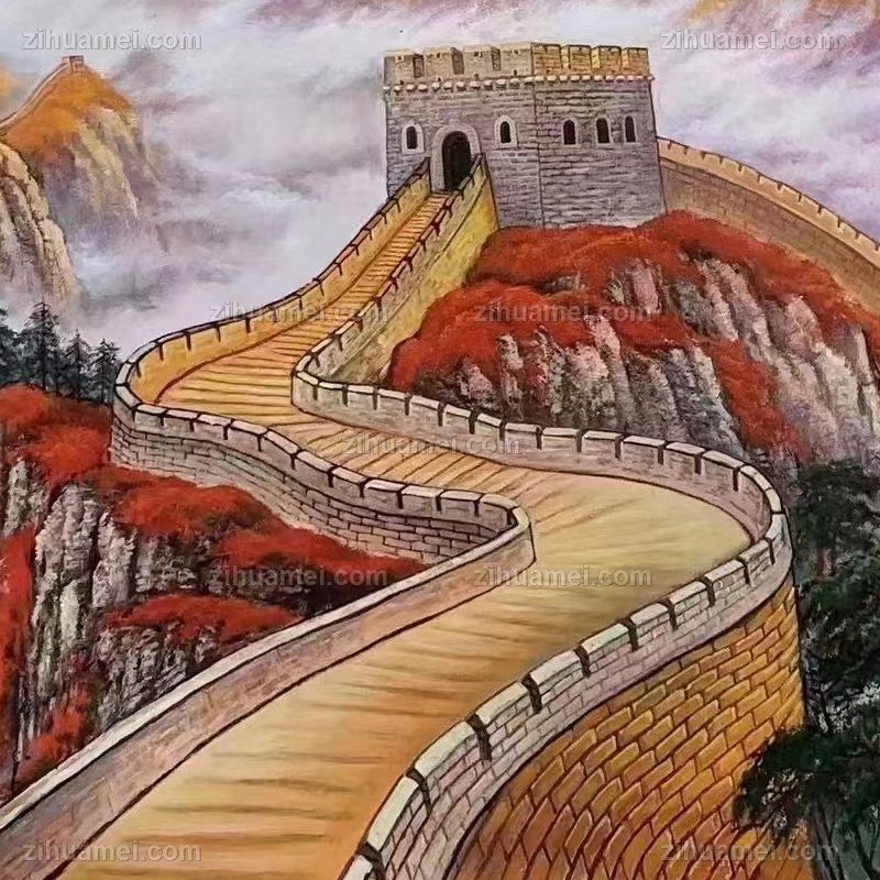 新中式长城风景油画纯手绘工笔写实油画 手绘