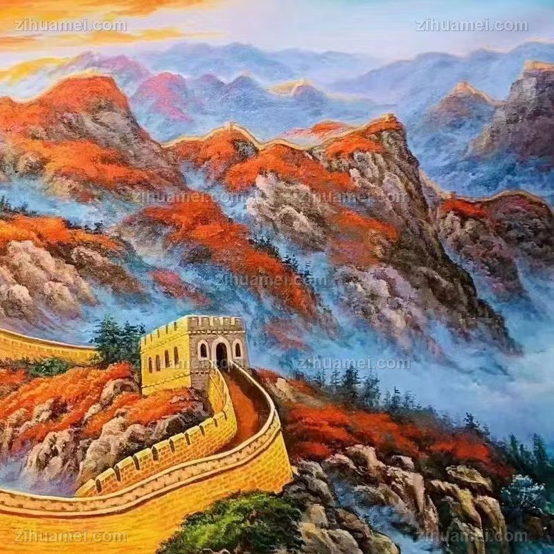 江山一条龙长鸿风景油画纯手绘长城风景油画 手绘