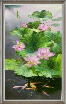 • 新中式荷花锦鲤风景油画家大业大