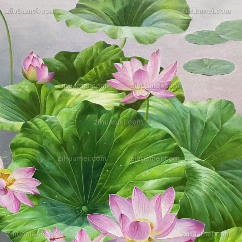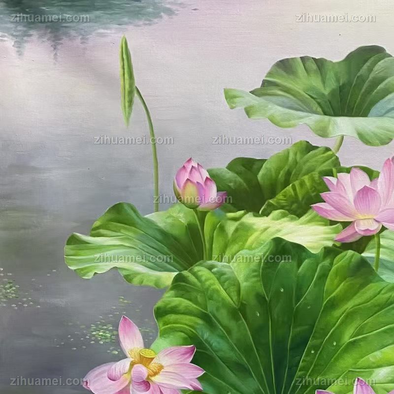 荷花锦鲤风景油画荷花池风景油画纯手绘油画 手绘
